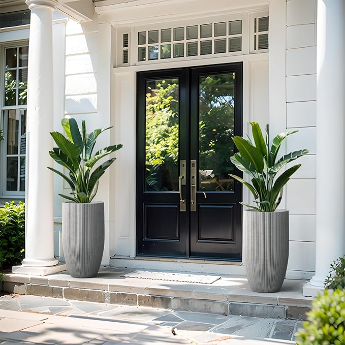 • Large & Versatile – Whether displaying a vibrant plant indoors or elegantly placed on your front steps, porch, or patio, this spacious planter effortlessly adapts to any setting. Its distinctive style complements a wide range of décor, from modern and minimalist to traditional, adding a touch of sophistication and charm to your space.