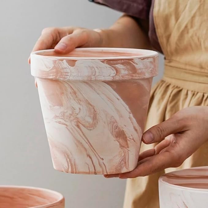 • Unique Macchiato Design - Each terracotta plant pot is crafted by hand, blending white and red clay to create a beautiful macchiato effect. The spontaneous mixing process ensures no two pots are exactly alike, giving each one its own distinctive pattern and character. The result is a stunning design that adds personality to any plant.