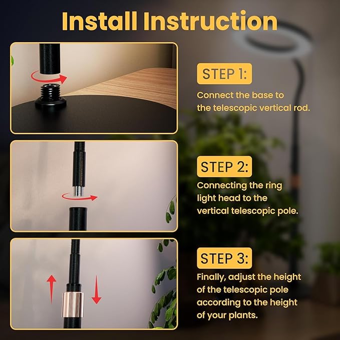 • This plant grow light is equipped with a metal base to ensure stable standing. The sponge pad at the bottom can prevent the desk lamp from tipping over and scratching the table. Easy to install, practical in design, it is the perfect solution for indoor desktop plants.