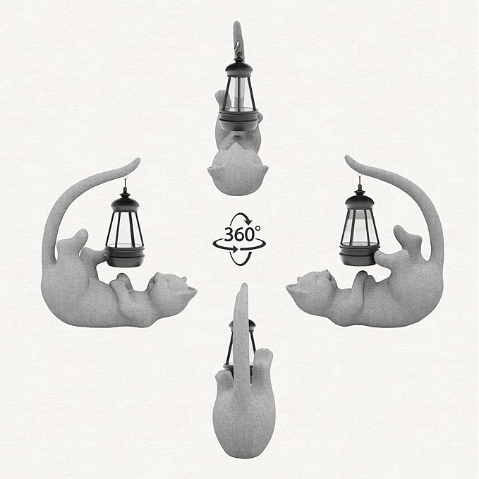 Solar Cat Garden Statue 15 Inch Porch Patio Decor for Outside Yard Decoration Outdoor Unique Housewarming Gardening Birthday Gifts for Cat Lovers Women Grandma