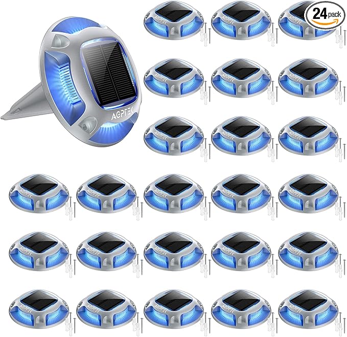 AGPTEK Solar Driveway Lights 24 Pack, 2 Colors in 1 Outdoor Solar Deck Dock Marine Waterproof LED Driveway Marker Security Lights for Outside Pathway,Boat Dock,Step,Walkway,Path,Garden