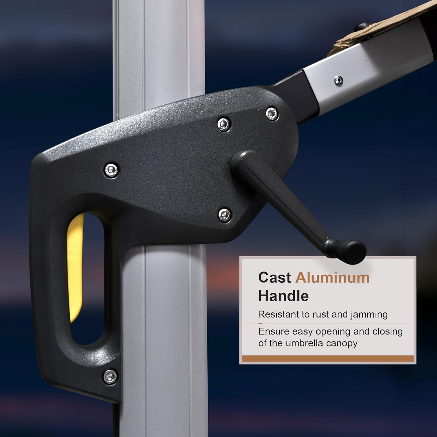 PURPLE LEAF 10' X 10' Solar Powered LED Patio Large Umbrella Offset Double Top Hanging Umbrella Outdoor Market Umbrella for Garden, Deep Beige
