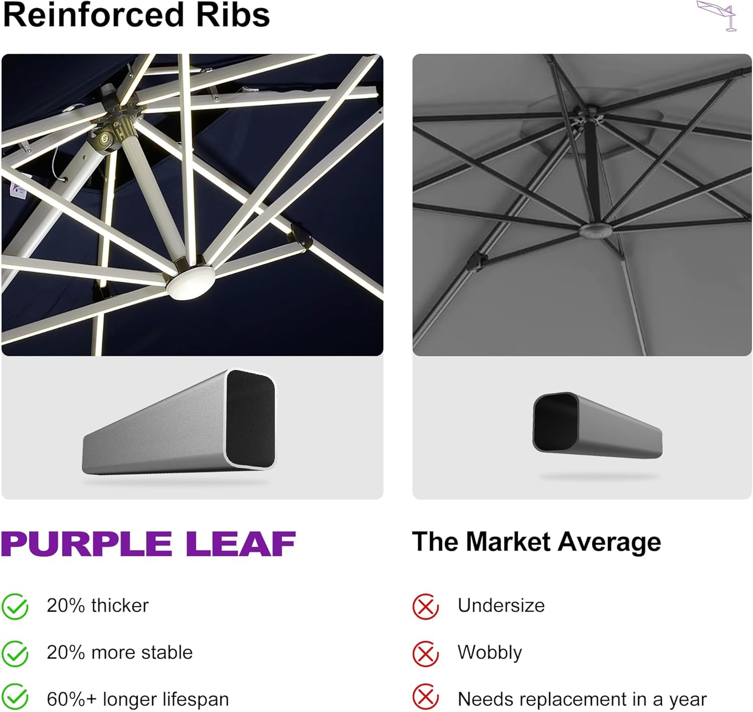 • All-aluminum umbrella bones and 8 heavy-duty ribs, anti-oxidation spray painted, extension of time of use