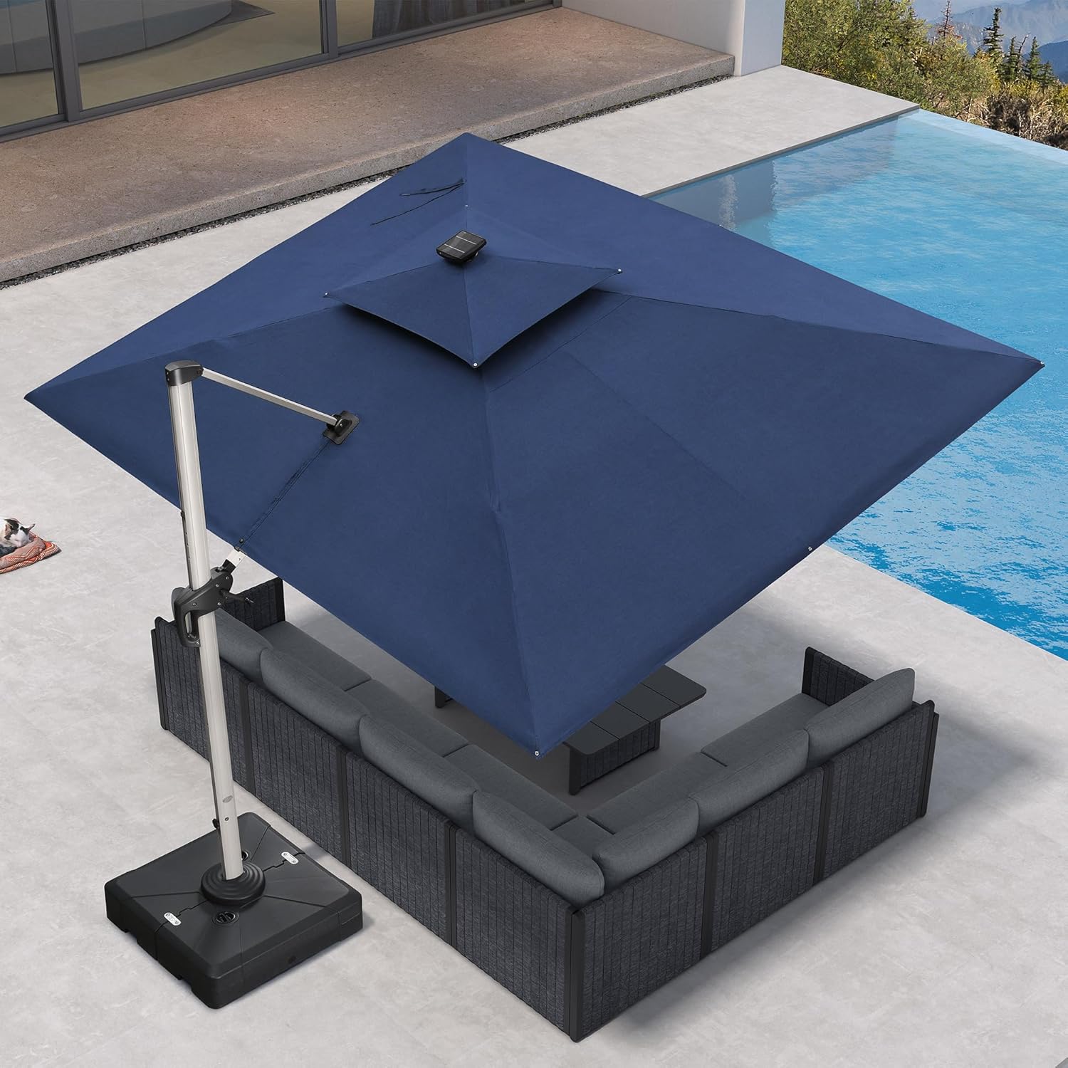 PURPLE LEAF 9' X 12' Solar Powered LED Patio Large Umbrella Offset Double Top Hanging Umbrella Outdoor Market Umbrella for Garden, Spectrum Indigo