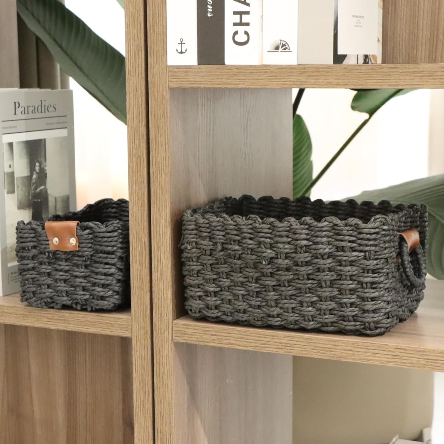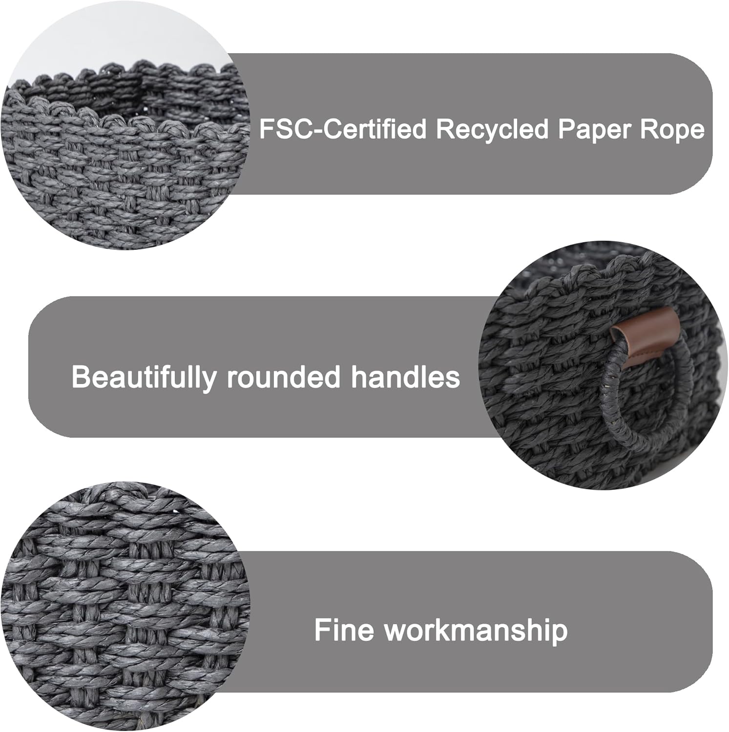 Paper rope Small Storage baskets for Organizing,Cute woven Little basket for Home,Shelves, Bathroom,Decorative basket,Set of 3 (Black)