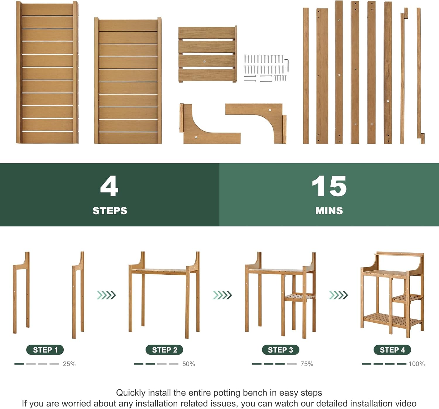 • 【After-sale】The potting tables for outdoors is green and durable. Whatever problems of this all weather potting table, please feel free to contact us, we will get it settled as soon as possible.