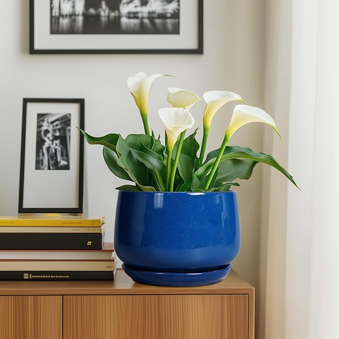 • Modern Ceramic Planter: This blue planter features a stylish curved design with an integrated bottom plant tray, suitable for various styles of home decor, room decor, bathroom decor, living room decor, office decor, outdoor decor, patio decor