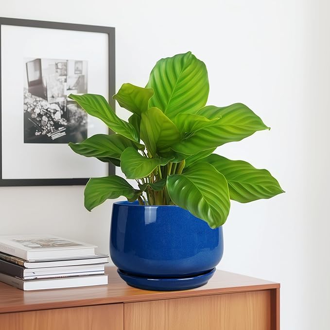 • Dimensions: These ceramic planters pit measures 7.28" x 7.28" x 5.39". Blue planter is an ideal choice for growing snake plant, money tree, geranium plant, peace lily, monstera deliciosa, succulents, cacti, aloe vera, orchids, african violet, bonsai tree and other indoor & outdoor plants