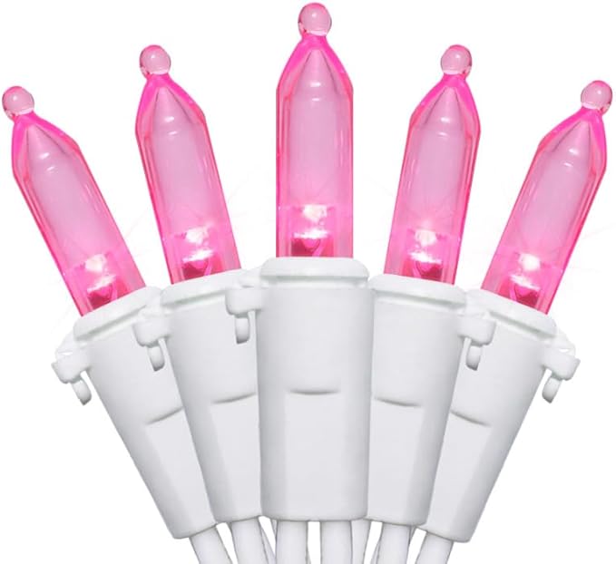 • 【Mini Valentine's Day Lights Specification】: 2 Sets - white wire chritsmas light string includes 100 count pink LED lights, total length 35.3ft, lights length 33ft and each led is 4 inches apart, 24 inches lead wire, 4 inches end connector (Extra 2 x bulbs and 1 x fuse included)