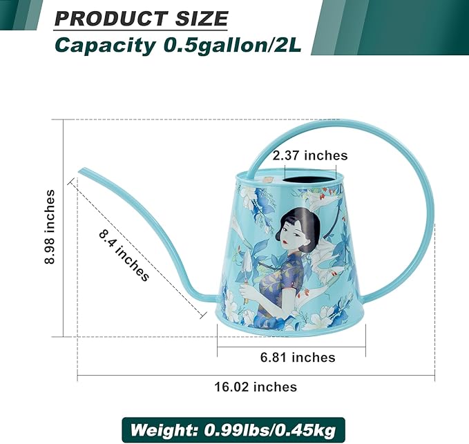 • PERFECTLY INDOOR PLANT WATERING CAN: The houseplants watering can has a large water storage capacity of 2L/68oz, you can water all your indoor plants at once which can reduce the trouble of frequent irrigation. The curved handle with no sharp edges makes it easy and comfortable to carry around one-handed even full. This water can is more satisfied with your daily gardening needs.
