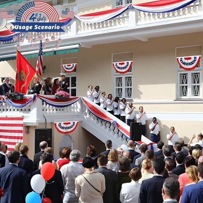 • Wide Range of Applications: These red white and blue bunting is great 4th of July decorations, our american flag can also be decorated for Independence Day, Memorial Day, Flag Day and so on