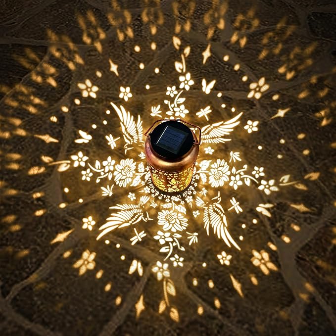 • 【Graceful design style】: Classical appearance, golden copper color and hollow metal finish, the beautiful lantern projects warm and vivid light in the dark, accompanied by gorgeous and elegant hummingbird flying patterns, adding a beautiful atmosphere to the surrounding environment.