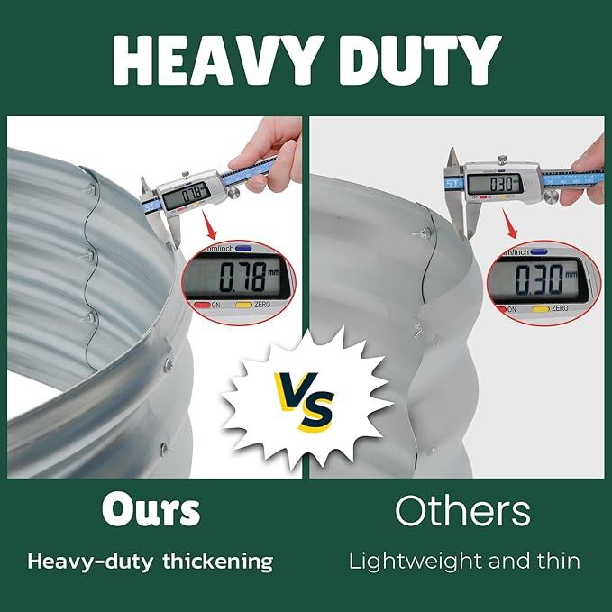 • Double Thickness: This galvanized raised garden bed will be with you for many years of gardening; This outdoor garden planter box is made of 0.78mm thick galvanized corrugated steel sheet, which is structurally sound; You can use this vegetable bed on sunny or rainy days without worrying about it warping or rusting