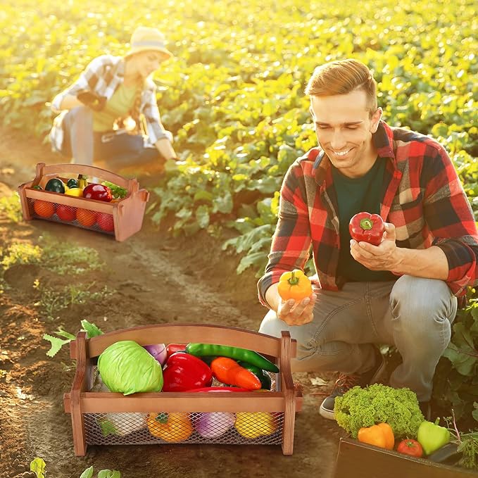 • Sturdy Construction: the garden hod harvest basket crafted from robust pine wood and rustproofed mesh wire bottom, exemplifies durability and longevity, ensuring it can withstand the weight of harvested produce and the rigors of agricultural use; Manually handcrafted to refine a smooth finished that boosts its natural appeal. Designed with quality in mind, the baskets are large and sturdy
