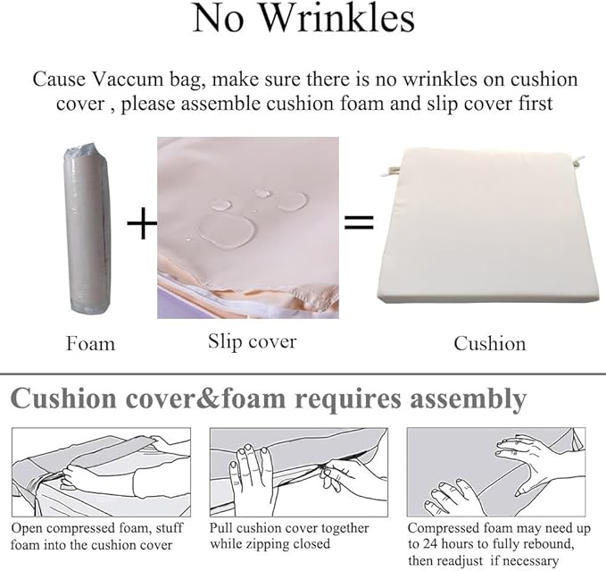 • 【Comfort & Support】 Experience ultimate comfort with the high density foam of these patio chair cushions set of 2. They provide excellent support for your hip, promoting good posture and allowing you to relax for extended periods of time. <b>All outdoor dining chair cushions are packed with vacuum bag. You need to assemble cushion to make there is no wrinkles in cushion covers</b>