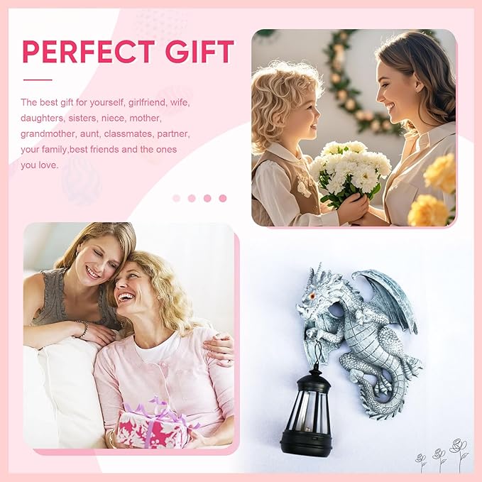 Solar Garden Decor Statues Figurine Dragon Garden Art for Patio Balcony Yard Lawn Unique Birthdays Gifts for Mom Grandma Women Wife Sister