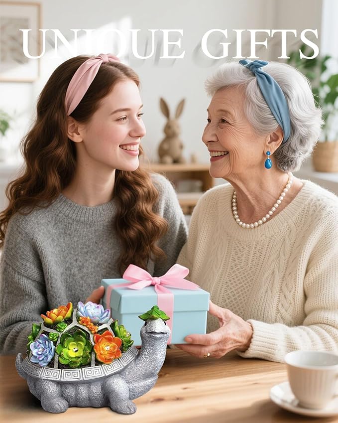 • Birthday Gifts for Mom: Looking for a unique Mother's Day gift for mom? This cute solar turtle garden statue lights up automatically at dusk, making perfect house decor for gardens and patios A thoughtful present for wives, grandmothers and friends too - ideal for birthdays, housewarmings or as a special gardening gift