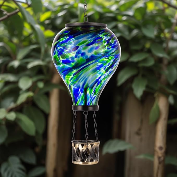 • 【 Hot Air Balloon Solar Lantern】Starsoul hot air balloon solar lantern features a mesmerizing blend of blue and green hues swirling together in a captivating dance of color. You can add some small figures or solar candles to the basket of hot air balloon lights to make it even prettier.