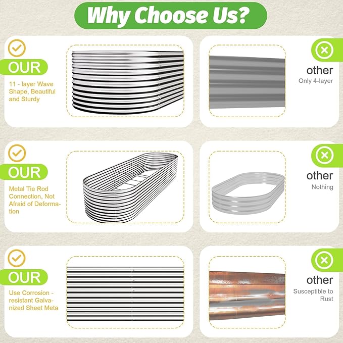 • Quick & Easy Assembly: With a straightforward structure and clear instructions, setting up your raised bed is a breeze.