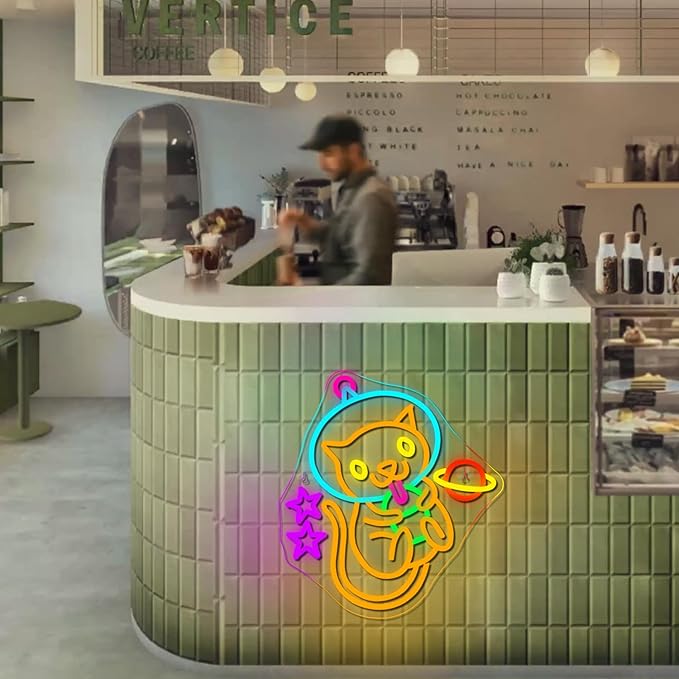 • Playful Design: This cat bubble tea neon sign features a cute kitten sipping on a cup of pearl milk tea, adding a touch of whimsy and fun to any room, making it perfect for bedrooms, living spaces, cafes, or bubble tea shops.