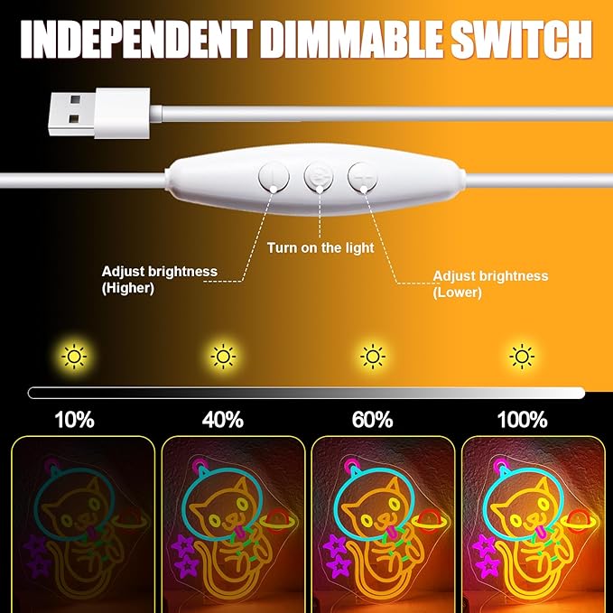 • Vivid Color Display: The cat bubble tea neon light illuminates in a beautiful mix of colors, including soft pastels and bright tones, making it an eye-catching piece that adds a lively, cheerful ambiance to bedrooms, living rooms, cafĂ©s, or even bubble tea shops.