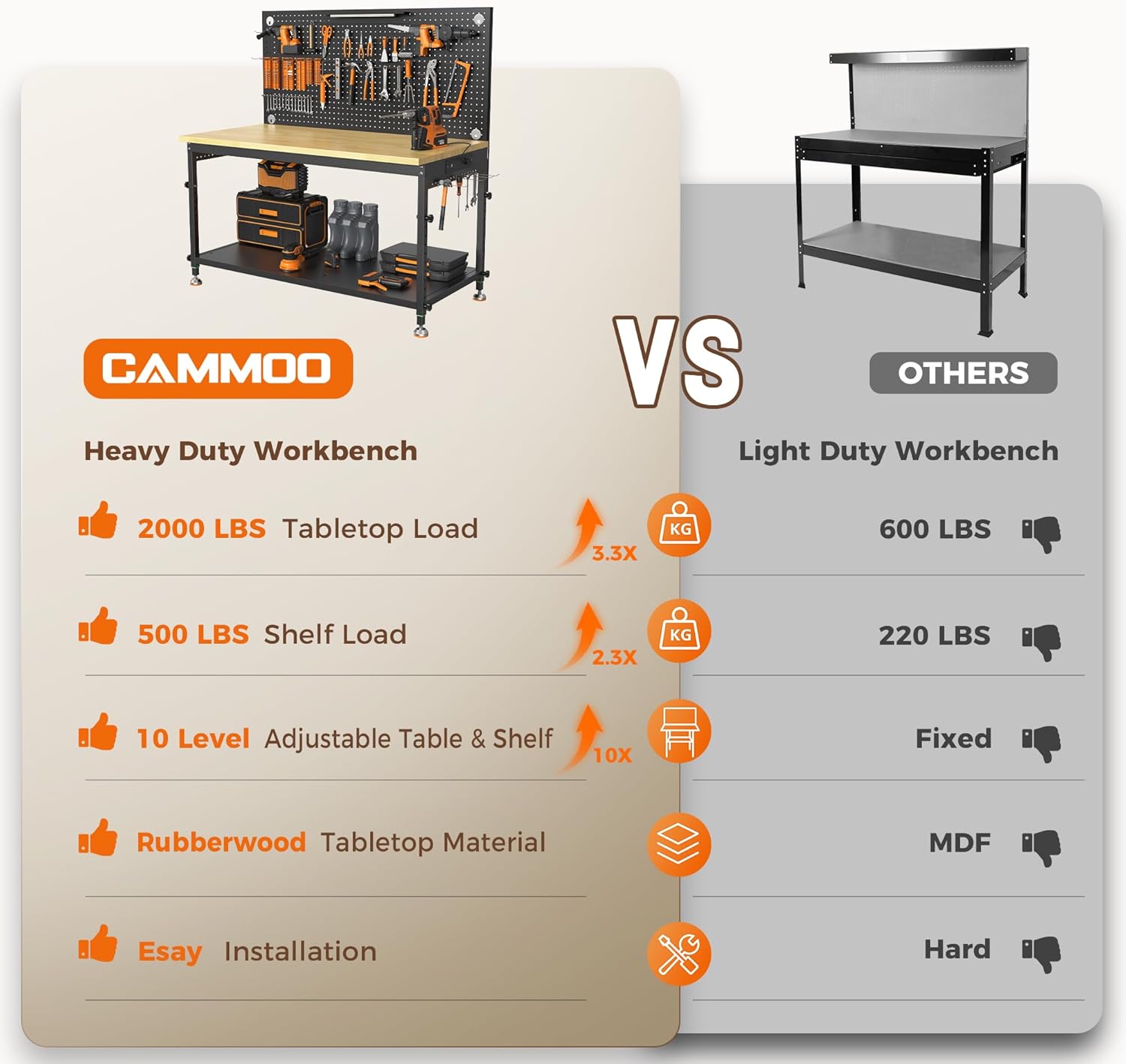 • [Save time] Pre-installed and structures without driling save your installation time easily. Detailed instructions come with the package. We also provide a detailed assembly video on this page. Customize your workbenches for garage, office, home, commercial, and Woodworking Shop.