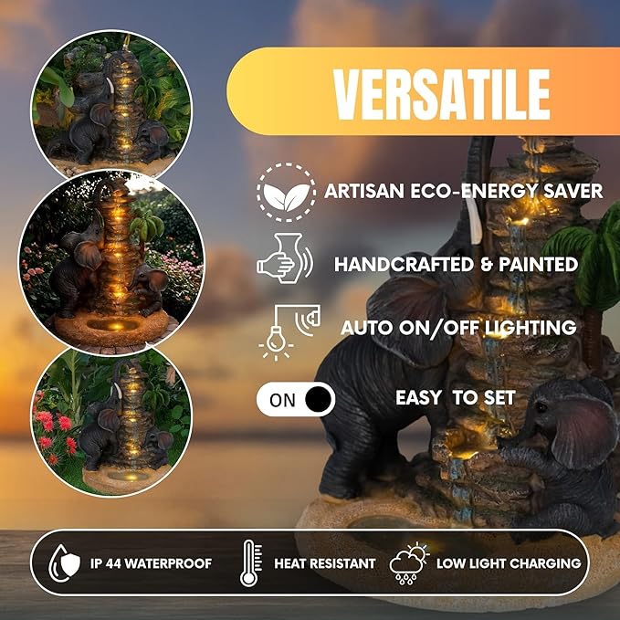 • Gift/Symbolic Meaning --> Ideal Gift for Nature Lovers/Relaxation: Elephant and water fountain themes resonate with nature and relaxation.