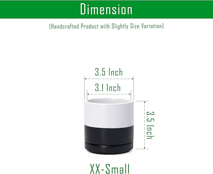 • Multiple Size Options: Available in six sizes (3.5" to 11.8") to fit plants of all types, from small succulents to larger houseplants. Small 3.6 Inch Planter Pot: 3.5" Diameter x 3.5" H, Potting Soil Needed: 0.11 gallons / 0.45 qt.