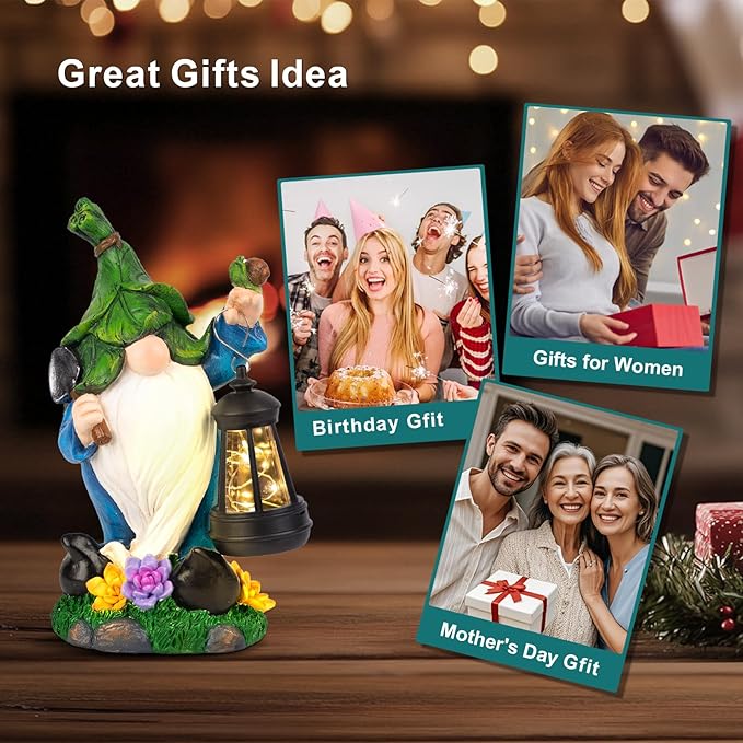 • [Gnome Gifts] Enhance your shopping experience with this unique solar garden gnome statue! Featuring a gnome design with a shovel, Placed in the yard, as if transported to a fairy-tale world. it's the perfect gift for women, mothers, and grandmothers. Not only does it add charm and utility to your outdoor space, But it also brings joy to your loved ones.