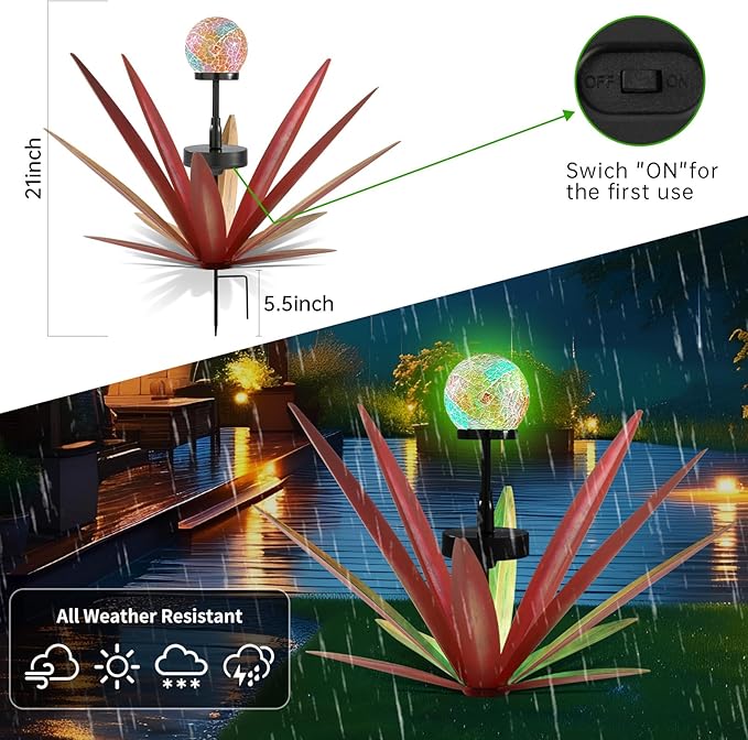 • Solar powered light of agave sculpture can be lit up for 8-10 hours with a full charge