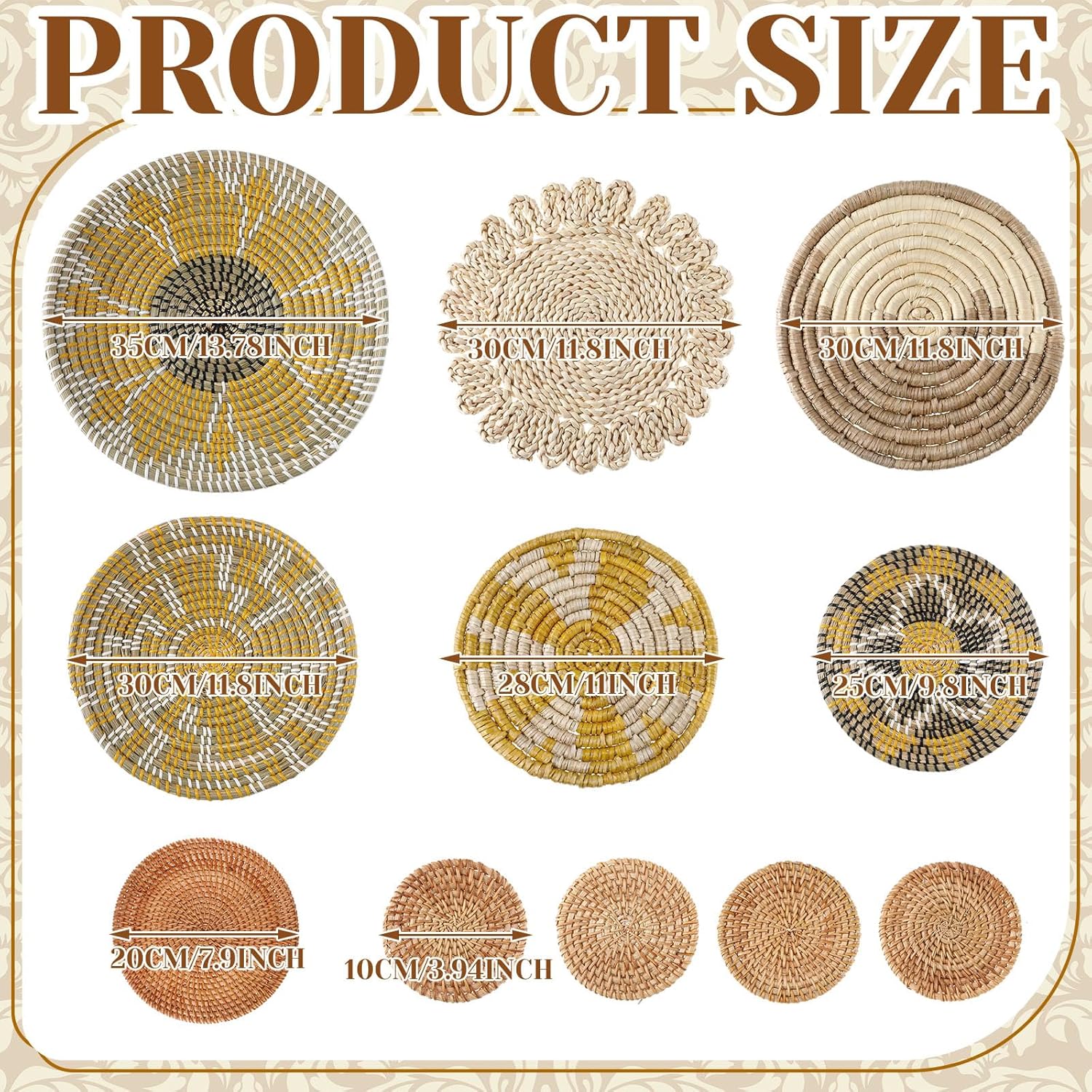 • Ample Quantity and Various Size: you will receive 11 pieces of boho wall baskets in diverse designs and sizes, stylish and classic, enough to cater to your daily uses and matching needs, and can be shared with your friends or family