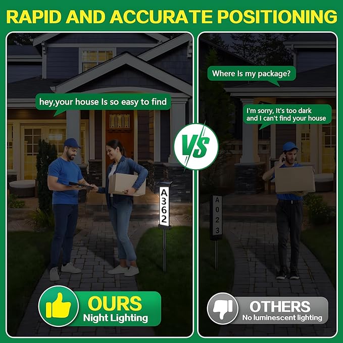 • IP65 Waterproof & Versatile Application: Constructed with high-quality ABS material and designed with IP65 waterproofing, it can withstand harsh weather conditions and continue to operate seamlessly. This home address signs for house can be mounted on mailboxes, houses, signs, gardens, and yards, making it suitable for a variety of applications and settings. For any inquiries about the product, tell us directly!