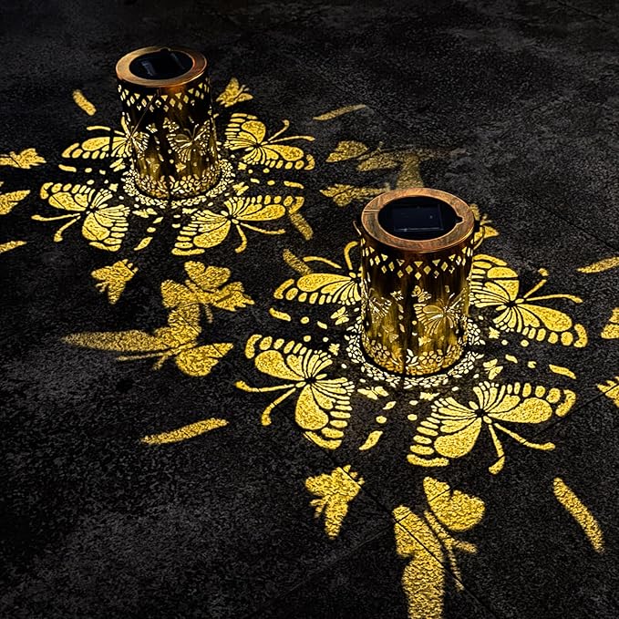 • Greatful Garden Decorative: solar lanterns adopts hollow out design and Butterfly pattern.Solar lanterns could project beautiful patterns, creating a gorgeous and warm atmosphere.Perfect for decorations for,patio,lawn,backyards,porch and many other scenes.