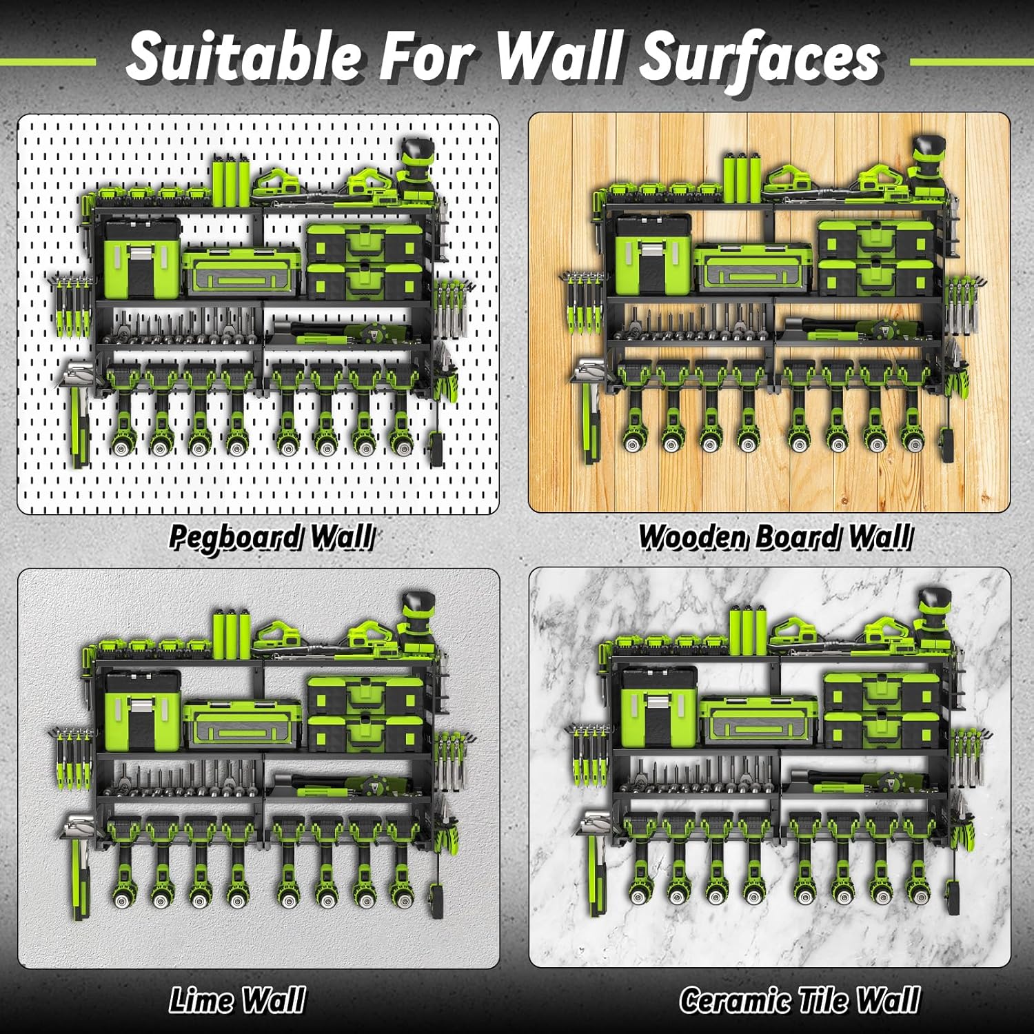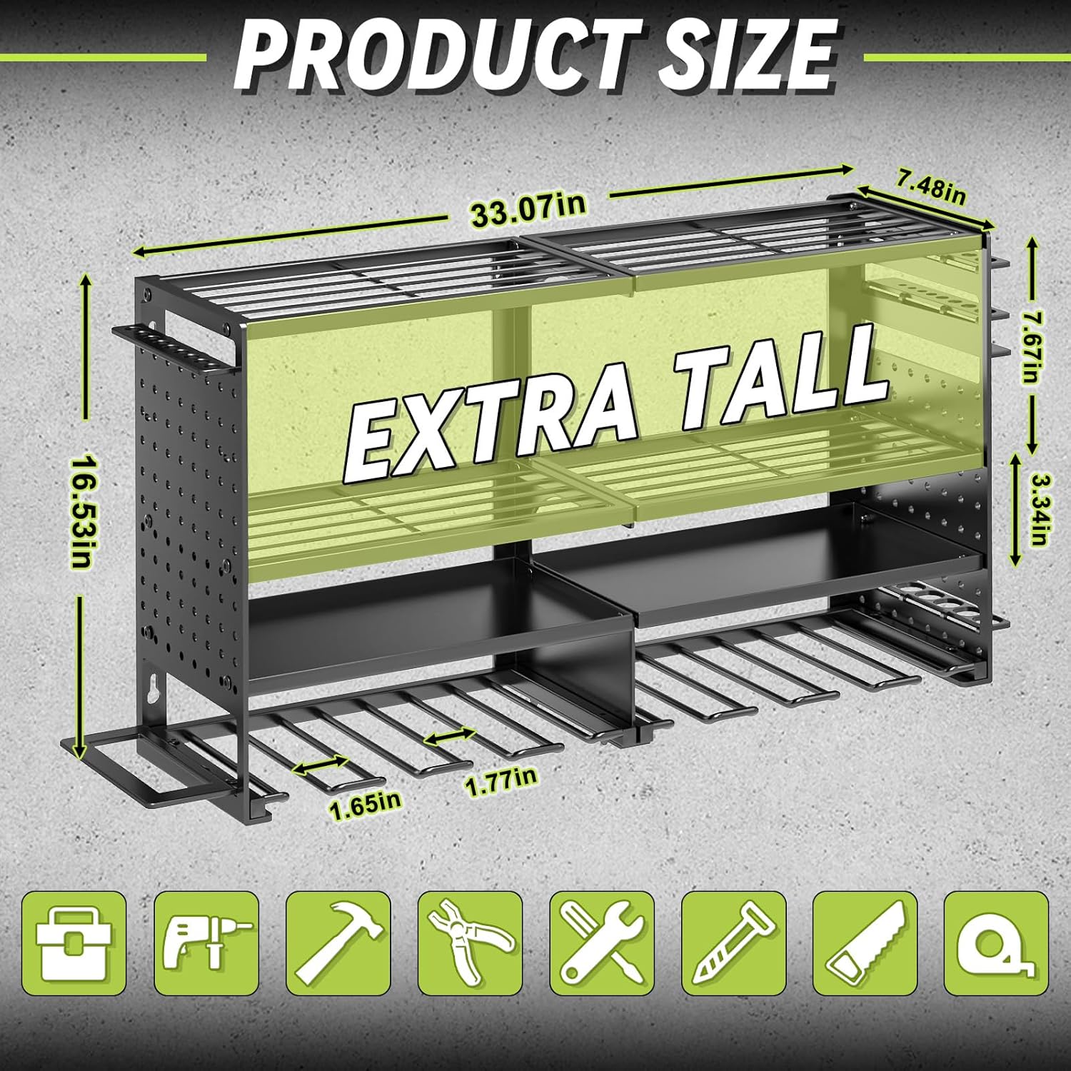 • 4 Layers Large Capacity:The garage tool holder can meet the needs of more than 50 kinds of tools placed, with a solid compartment can be placed in the screws and other small tools, the third layer of the heightened design is convenient for storing the tool box