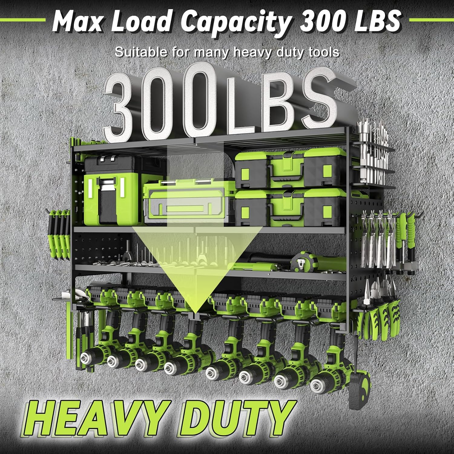 Power Tool Organizer Wall Mount,Heavy Duty Metal 4 Layer 8 Slots Drill Holder,Garage Cordless Storage Rack with Screwdriver Plier Hammer Holder for Workshop Carport Basement