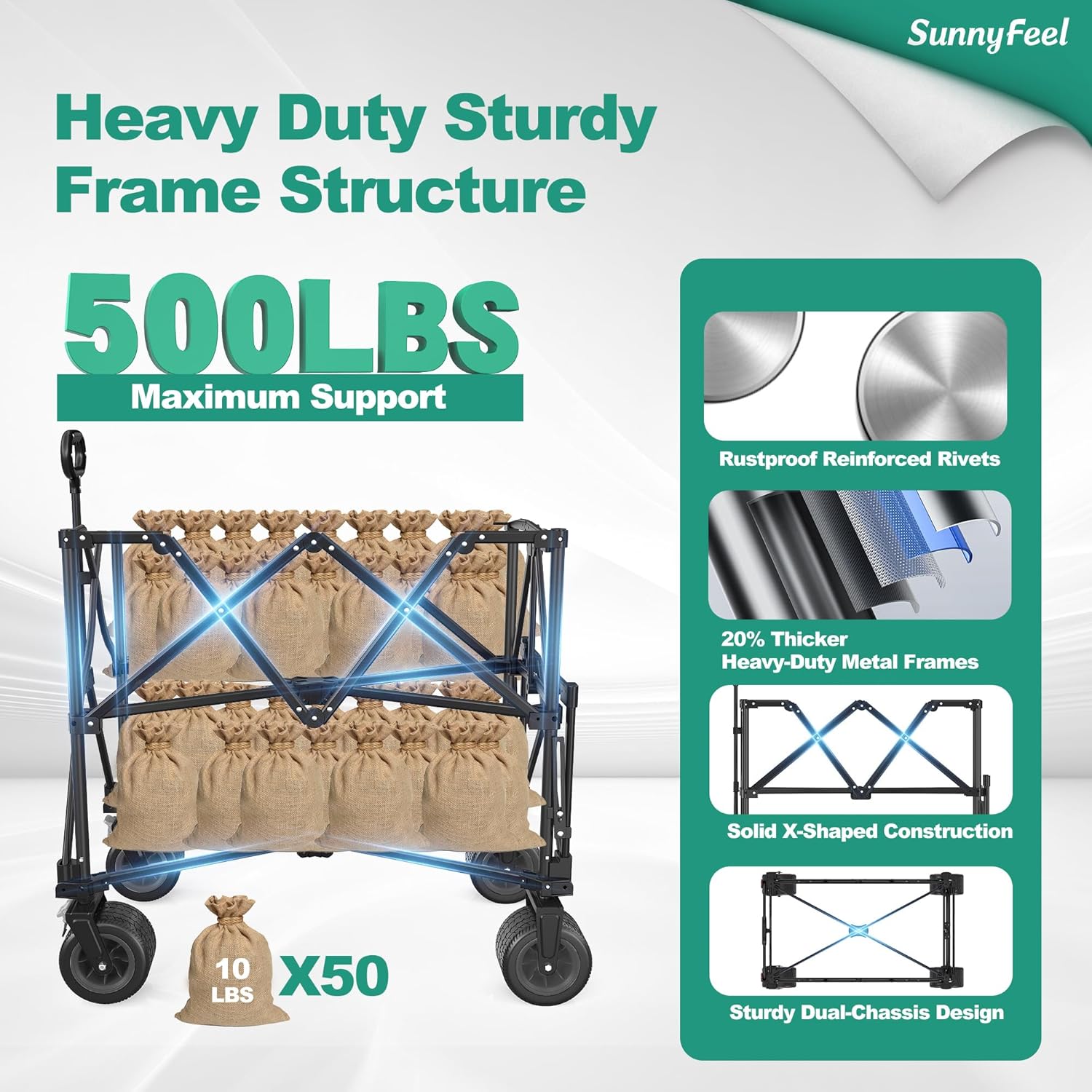 SUNNYFEEL Double Decker Wagon, Collapsible Outdoor Utility Wagon Cart 500LB Capacity Adjustable Handlebar,Foldable Wheels Stable Durable Oxford Fabric for Shopping Garden Camping (Black, Double Deck)