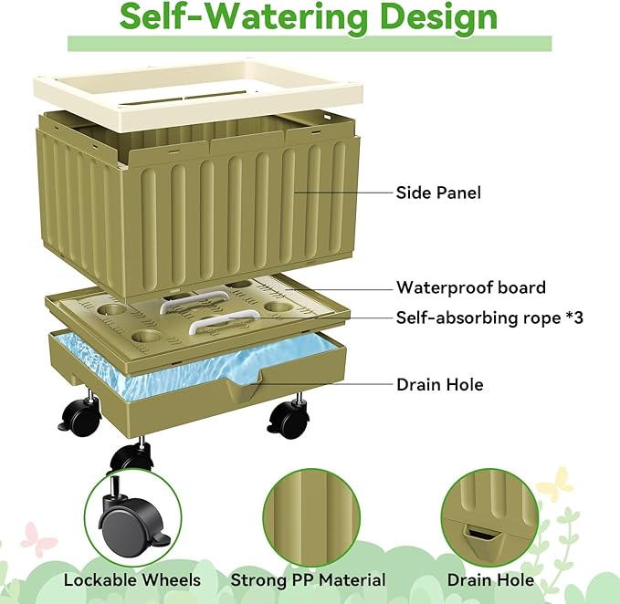 • Self-Watering Tomato Planter--Three self-watering ropes and panels with drainage holes, this design support healthy plant growth; The balanced trellis structure provides a stable environment for creeping and vine plants to thrive, combining practicality with aesthetic appeal.