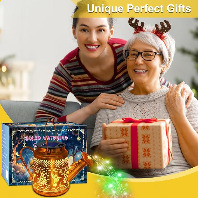 • Nighttime Garden Magic: This solar-powered watering can lantern creates a enchanting ambiance with its warm golden glow. The cascading string lights resemble a stream of sparkling stars, casting mesmerizing patterns on the ground. Perfect for transforming your garden, patio, or yard into a romantic retreat after dark