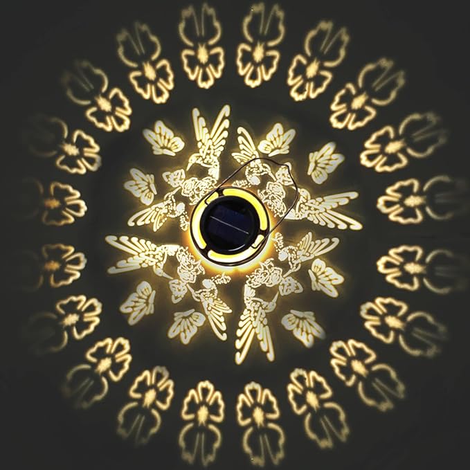 • Charming Hummingbird Design: This solar garden light features an exquisite vintage copper finish with a delicate hummingbird and floral hollow design. When lit at night, it casts crystal-clear, vibrant projections, creating a mesmerizing ambiance for your garden. The warm glow enhances your outdoor décor, adding a magical touch and transforming your patio, yard, porch, or garden pathway into beautiful yard art