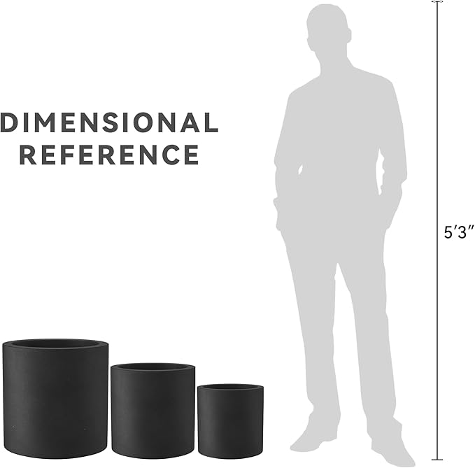 Kante 9.8",12.6",15.7" Dia Round Concrete Planter Set of 3, Modern Style Large Cylindrical Plant Pot with Drainage Hole and Rubber Plug for Indoor Outdoor Patio, Black
