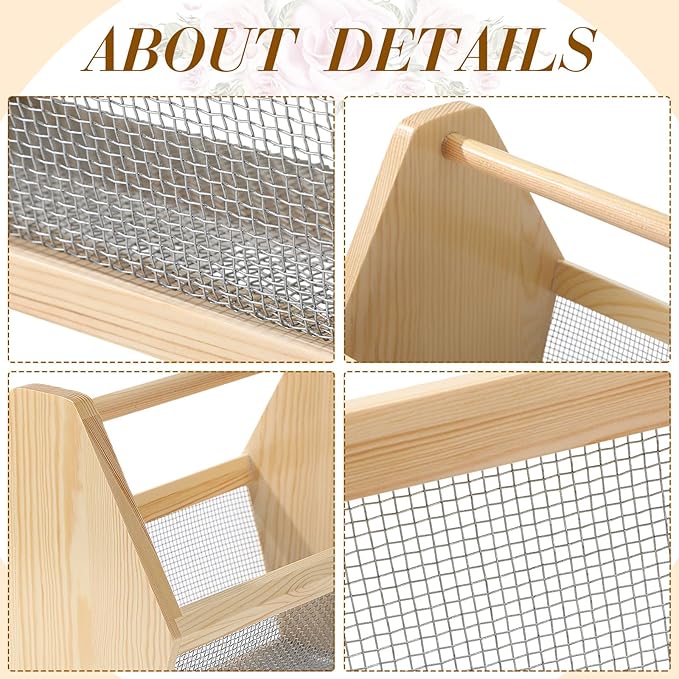 • Suitable Size and Material: this versatile gardening basket is 12 x 10 x 7.5 inches high and is the right size; It is made of pine wood with a rust-proof mesh wire bottom, which is more reliable, has a longer service life, and can stand the test of time