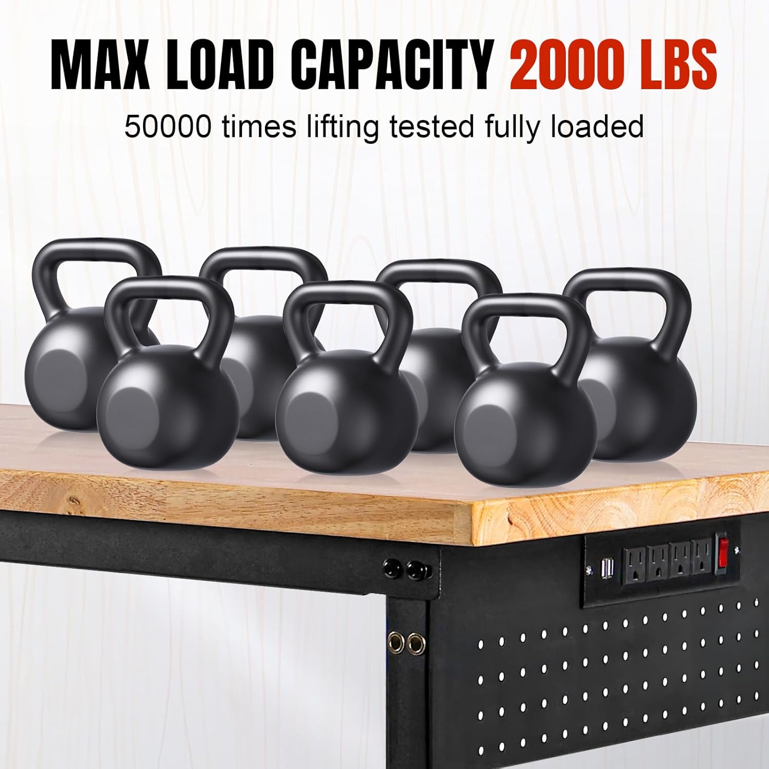 • ETL CERTIFIED POWER OUTLET: The garage table is equipped with ETL certified power outlets for more safety and durability. 4 AC outlets, 2 USB ports, cord length 6.6 inches, easy to use a variety of appliances and lamps. In addition, we matched with a pegboard and hooks for easy storage of tools to keep your workbench neat and tidy.