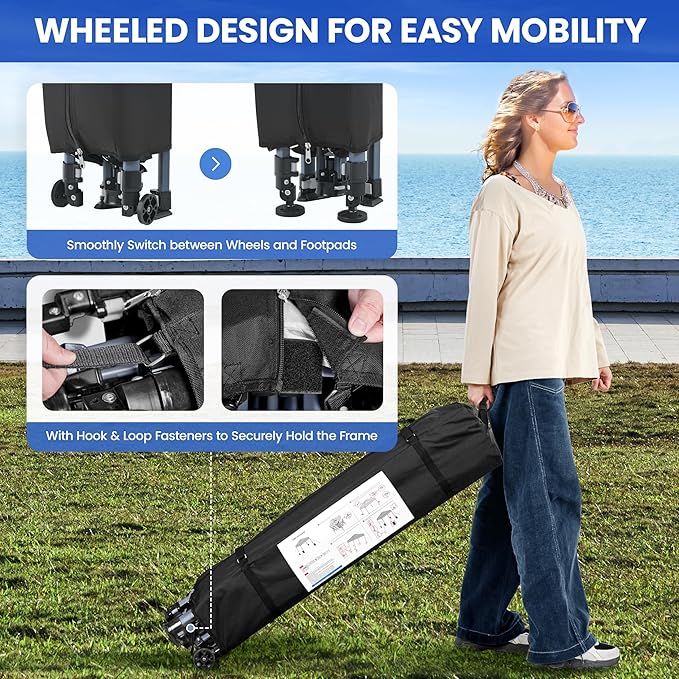 • Effortless Mobility: Two tent legs feature wheels, and you can lift another side of the tent and move it without dismantling. They can also be folded to become foot pads and ensure the tent stands stable