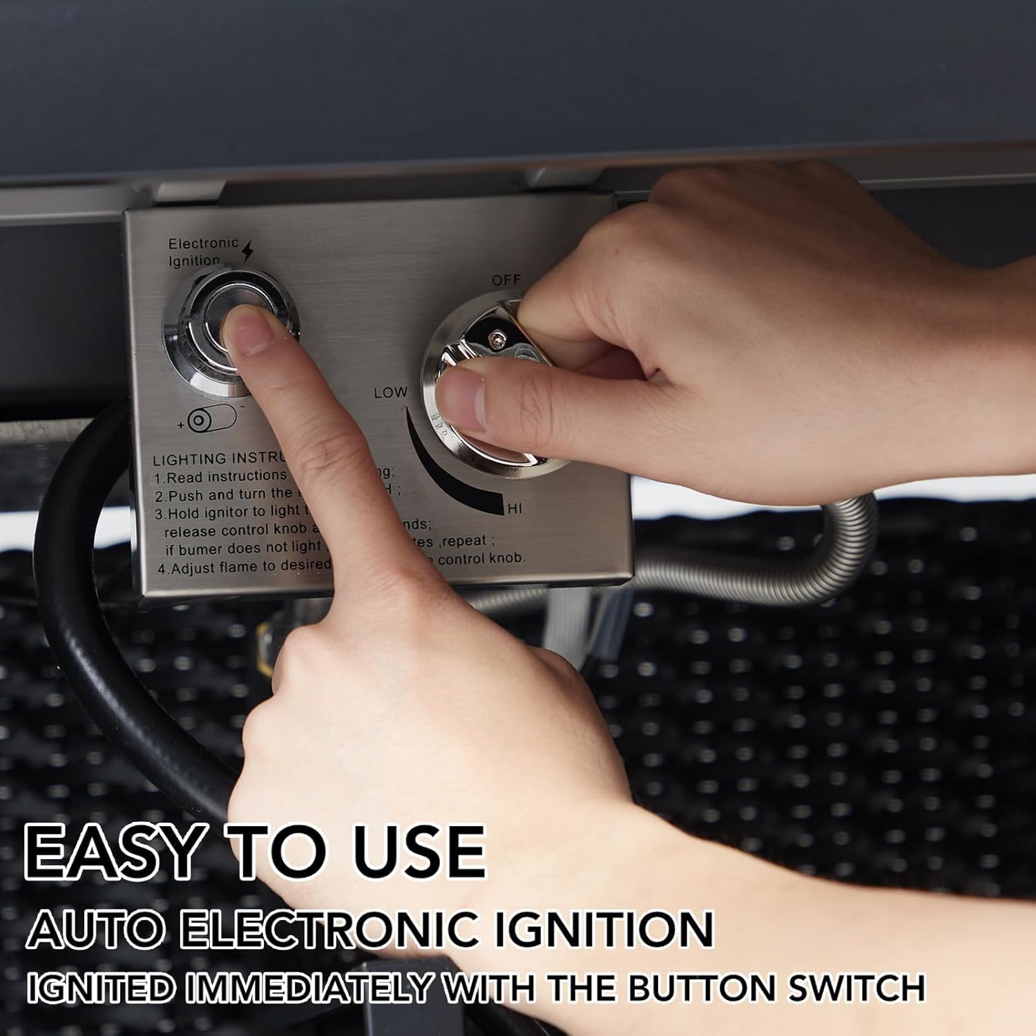 • 🔥Unique industrial design: Crafted from sturdy steel and featuring a unique slate tabletop, this fire table boasts a double-sided cover (metal or slate) that adds a touch of elegance to your garden. Hidden chrome manual control valve allows 100% smoke free variable flame height. With a simple push at the pulse switch and a turn at the valve knob, the electronic ignition system can start a beautiful fire in no time