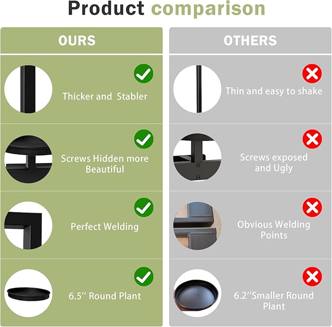 • 【Durable Metal Plant Frames】Plant wall shelf crafted from high-quality metal with exquisite finishing, rust and corrosion resistance, suitable for outdoor and indoor use,our plant frames wall decor not only provide sturdy support for your plants but alsoEnsure a stylish look. Round tray ensure stability and prevent plants from falling down.