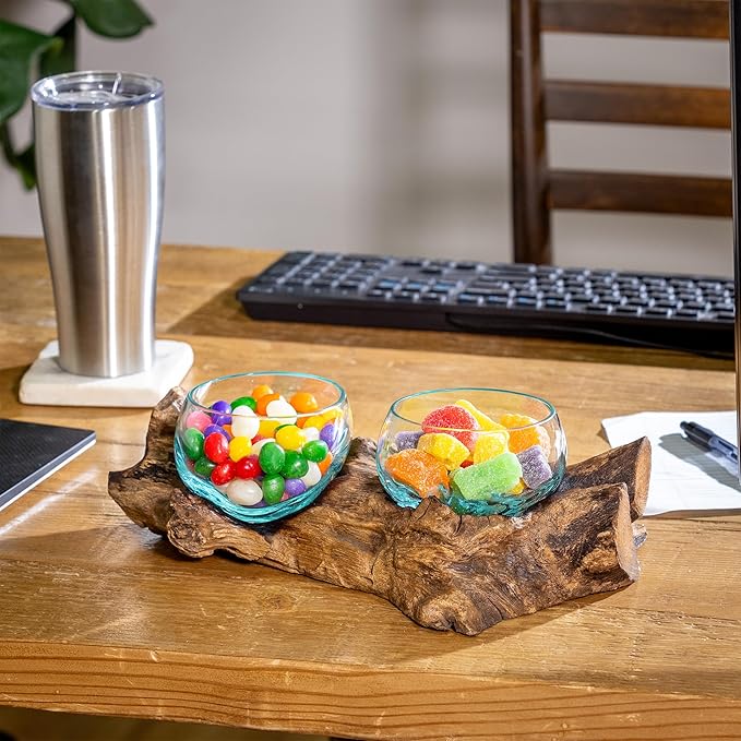 • ONE OF A KIND: Because each beautiful planter display is hand-made, each is unique. To assemble: simply set the glass topper on the driftwood base in the natural grooves of the base. The item is constructed by pressing the glass into the base, so each has a unique formation. Once correctly aligned, it will be a perfect fit! Simply place the glass to the base and you are all set to start displaying! Approximate overall size: 4.5"H x 13"L x 7"W, with 2 terrariums measuring 4" diameter.