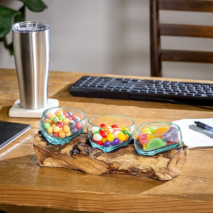 Cape Craftsmen Set of 3 Terrariums | Hand-Blown Blue Tinted Bubble Glasses On Natural Teak Driftwood Terrarium | Home Décor Indoor Planter with Stand | Glass Clear Pots for Succulent and Plants