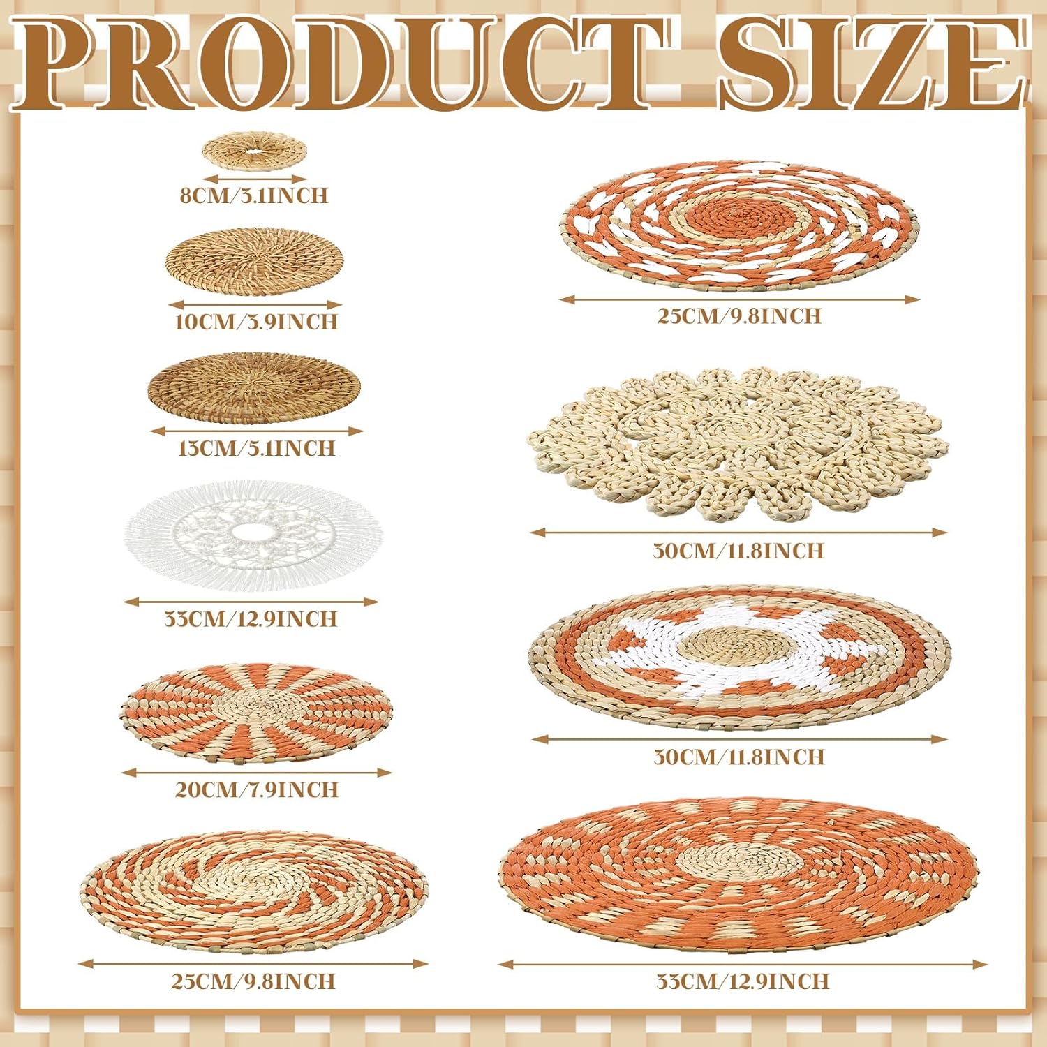 • Wide Range of Applications: boho basket wall decor set as placemats, or as decorative baskets to store toys and accessories, the rustic basket wall art is suitable for many occasions, such as hotels, restaurants, living rooms, bedrooms, schools, stores, offices, dorms, shops, spring, summer and more, bringing you an elegant and classic feeling