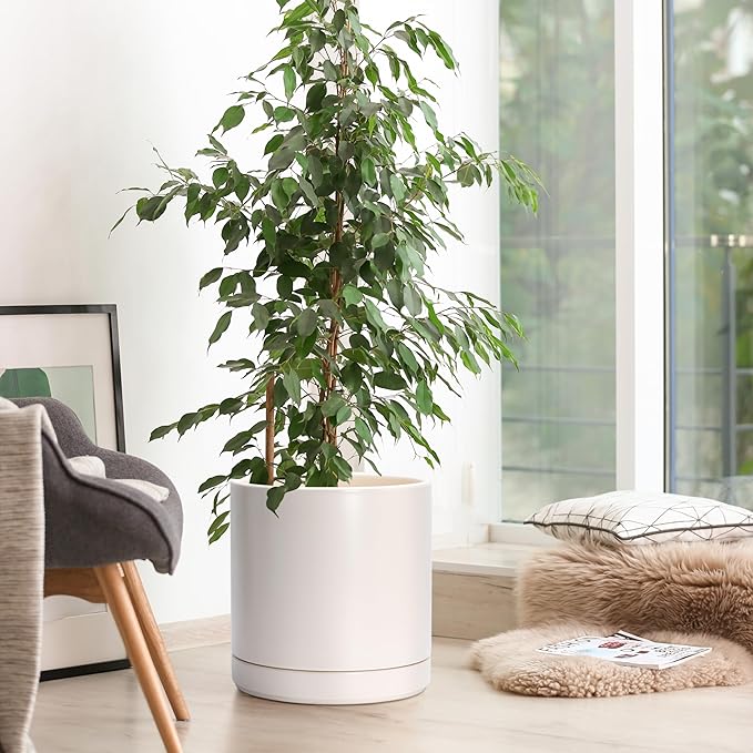 • Simple, elegant, and modern cylindrical straight round planter pot with saucer and drainage hole.