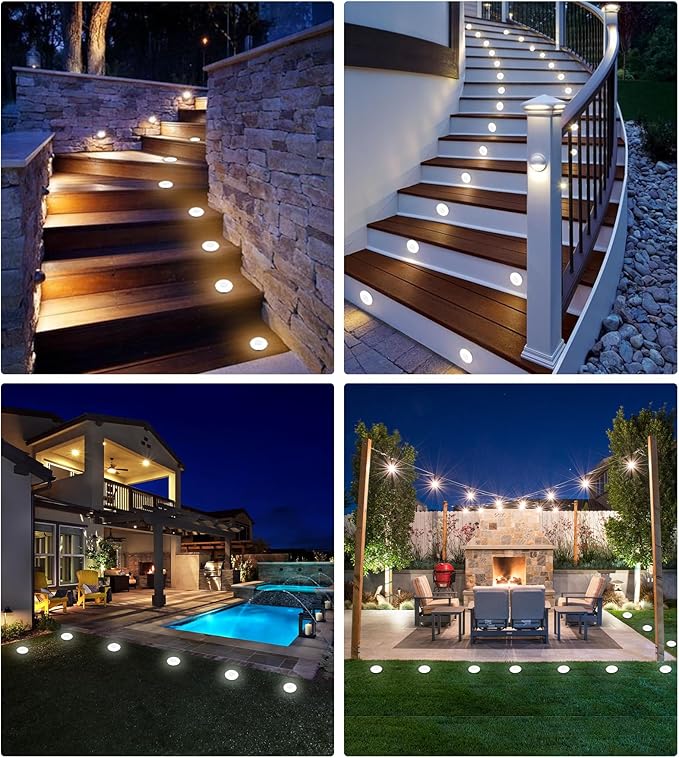 • 【Easy to install】Easy-install solar ground lights require no wiring; Ideal for pathway illumination, garden edging, and patio decoration with adjustable stake depth.With a minimalist, flush-mount design, these lights blend seamlessly into any landscape by day and cast a stunning glow by night. Ideal for residential, commercial, or hospitality settings. Combines 304 stainless steel base with high corrosion resistance stakes spikes components ensures structural stability and long-lasting outdoor durability.